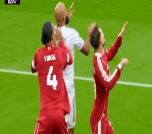 然而,這也是一個存在巨大爭議的進球。關鍵在于,在爭搶頭球時,范戴克不慎肘擊麥克阿利斯特,導致后者頭部受傷后倒地。看到麥克阿利斯特受傷倒地,范戴克反應稍慢,讓姆貝莫得到了在小禁區起腳射門的機會。