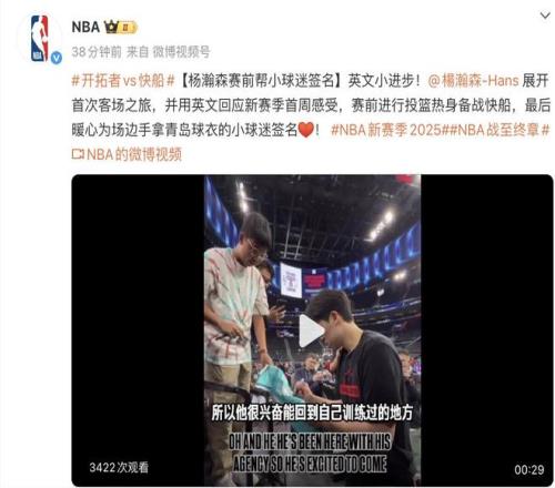 畢竟大家很清楚,長期來看,楊瀚森想要在NBA立足還是得英文水平過關(guān),還是得提升自己的溝通能力。所以這段時間圍繞著楊瀚森的口語水平問題一直爭議不斷,還有就在對戰(zhàn)快船隊的比賽開始前,NBA工作人員采訪了楊瀚森還在他們的官方賬號放出了采訪視頻。從中我們才知道,其實楊瀚森本身應(yīng)該是已經(jīng)掌握了一定的英文詞匯,只是他平時可能不太好意思說出來而已。