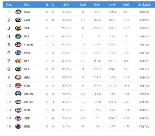 今日比賽后西部的掘金、勇士排名互換,其他球隊(duì)排名不變: