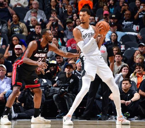 馬刺主場(chǎng)迎戰(zhàn)熱火,馬刺缺少了福克斯、索漢、科內(nèi)特、奧利尼克,戰(zhàn)力折損很大,熱火缺少了鮑威爾、希羅,戰(zhàn)力折損小于馬刺。本賽季熱火狀態(tài)不錯(cuò),在揭幕戰(zhàn)惜敗給魔術(shù)后,他們?nèi)〉?連勝,擊敗了灰熊、尼克斯、黃蜂,3場(chǎng)比賽贏了67分,勢(shì)頭非常猛,今日熱火給馬刺帶來了很大沖擊,一度壓制馬刺,不過馬刺擁有怪獸球員文班,還有上賽季的最佳新秀卡斯?fàn)枺谔熨x上馬刺更勝一籌,最終馬刺以107-101擊敗熱火,取得了開賽5連勝。文班23中10砍下27分18板6助5帽,卡斯?fàn)?2中7得到21分8板4助4斷,熱火方面阿德巴約27中12得到31分10板3助,威金斯18中11得到24分6板2助2斷。