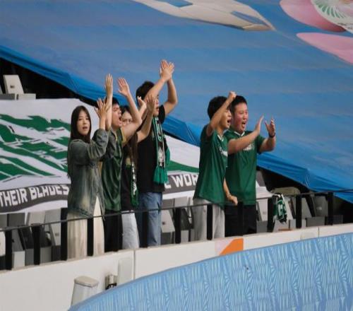 題圖說明:上海U20全運男足隊員在晉級八強后,特別感謝現場觀賽助威的球迷。