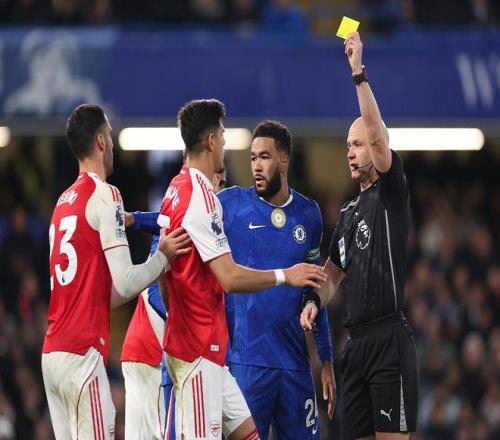 在這場關乎誰才是“倫敦之王”的較量中,兩支傳統強隊沒有發揮出各自最高的技戰術水平,比賽充斥著肘擊、揮拳、蹬踏和推搡。第38分鐘,切爾西鐵腰凱塞多蹬踏客串中鋒的阿森納中場梅里諾,經過視頻助理裁判(VAR)審核,名哨安東尼·泰勒直接把凱塞多紅牌罰下。阿森納球員的動作也很粗野,包括約克雷斯在內的六名球員吃到黃牌。