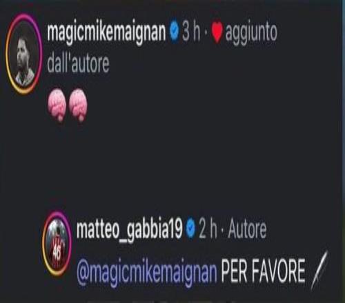賽后,邁尼昂在加比亞的社媒動態下評論了兩個“大腦”表情符號,而加比亞則簡單地回復道:“請續約。”