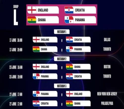 北京時間12月7日凌晨,世界杯小組賽賽程公布,L組方面,英格蘭首戰對陣克羅地亞將在北京時間6月18日6時進行。