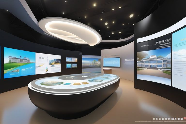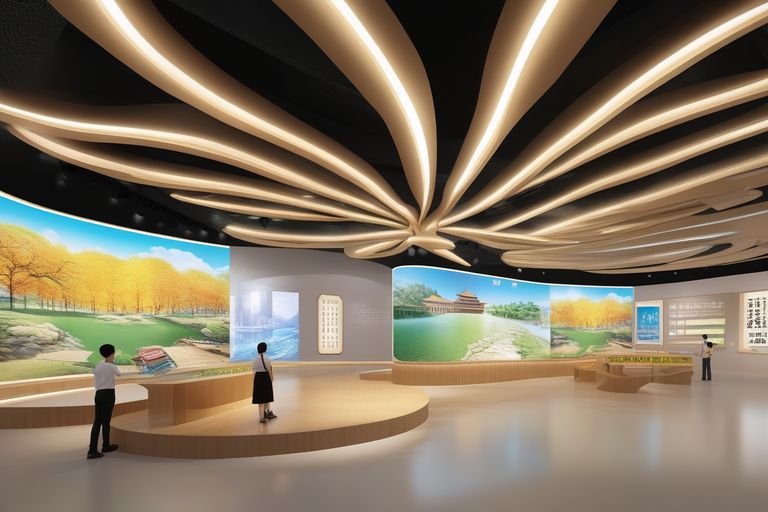 文化薈萃區(qū):這個區(qū)域的建筑造型是一個方形的拱門,象征著**教育學院的文化底蘊,如同一座文化的殿堂,博大精深。展示方式是沿著方形的通道,設置一系列的展板、圖片、視頻、音樂、剪紙、民俗等,展示學校的校訓、校風、校歌、校徽、校慶等,以及學校的科研成果、教學特色、學術交流、社會服務等。設計意圖是讓參觀者感受到學校的文化氣息和創(chuàng)新活力,了解學校的文化建設和創(chuàng)新成果,欣賞學校的文化藝術和民族風情,傳承學校的文化精神和文化遺產。展示方式的選擇是為了突出展廳的主題和重點,利用多種展示形式,增加展廳的信息量和趣味性,激發(fā)參觀者的興趣和情感。多媒體設備的應用是為了增強展廳的互動性和現(xiàn)代感,利用高科技手段,展示學校的文化風貌和文化成果。展示內容的目的和作用是為了展示學校的文化地位和文化價值,培養(yǎng)參觀者的文化自信和文化素養(yǎng),激發(fā)參觀者的文化創(chuàng)造和文化傳播。這個區(qū)域包含以下幾個多媒體設備: