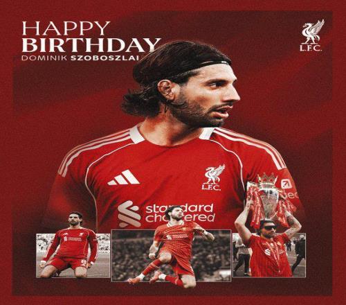 雷速體育10月25日宣 今天是利物浦中場球員索博斯洛伊的25歲生日,俱樂部官方發布定制海報,向這位匈牙利球員表示祝賀。2023年夏窗,索博斯洛伊以7500萬歐元的轉會費從萊比錫加盟